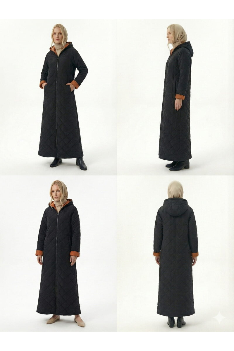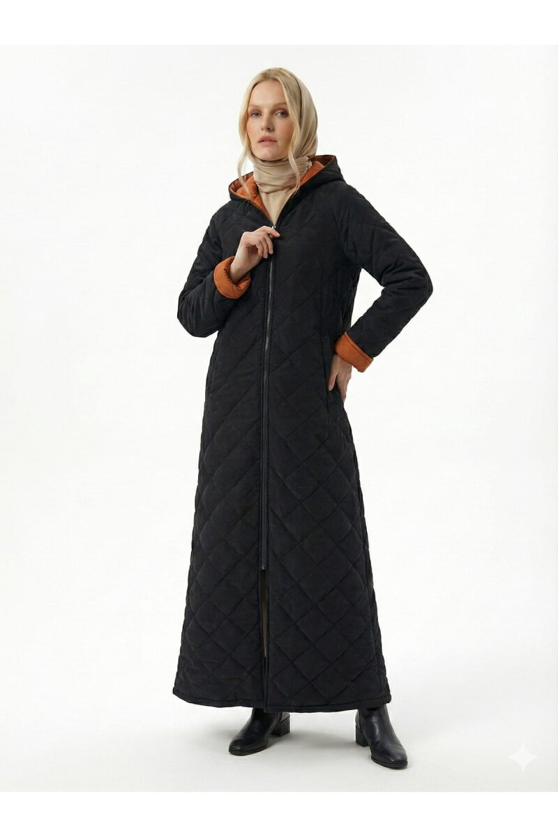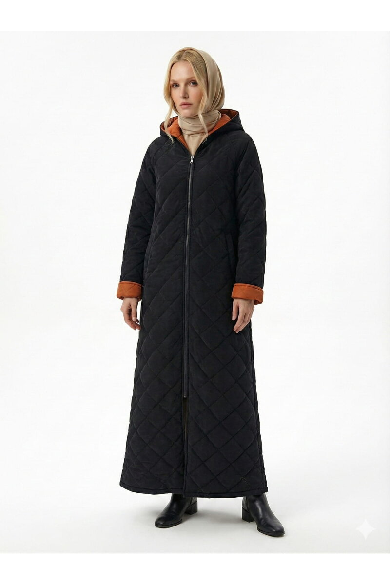 Vivezza Çift Taraf Trençkot Kapitone Manto 7050-03 SİYAH KİREMİT